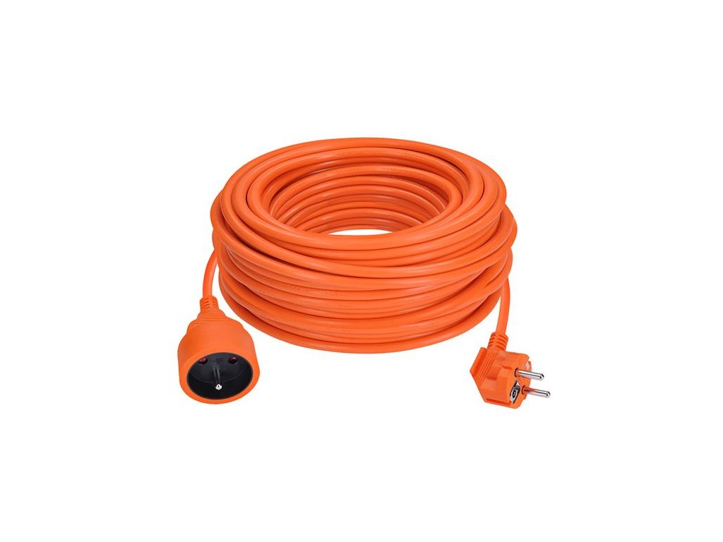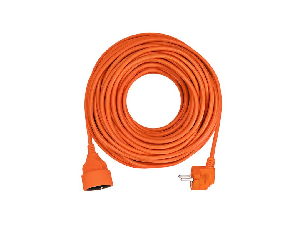 Oranžový prodlužovací kabel s délkou 30 metrů a jednou zásuvkou je ideální k prodloužení elektrické energie na zahradě nebo v dílně. Díky třem vodičům včetně uzemnění je vhodný pro připojení jakýchkoli zařízení s třípólovou uzemněnou i dvoupólovou neuzemněnou vidlicí přívodní šňůry. Barevné odlišení od okolního prostředí zvyšuje bezpečnost při práci.