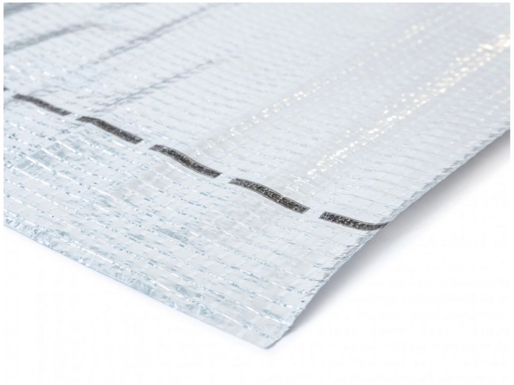 Al folie je vyztužena mřížkou ze skelného vlákna pro vyšší pevnost a odolnost při instalaci topných kabelů a zalévání betonem nebo anhydritem.