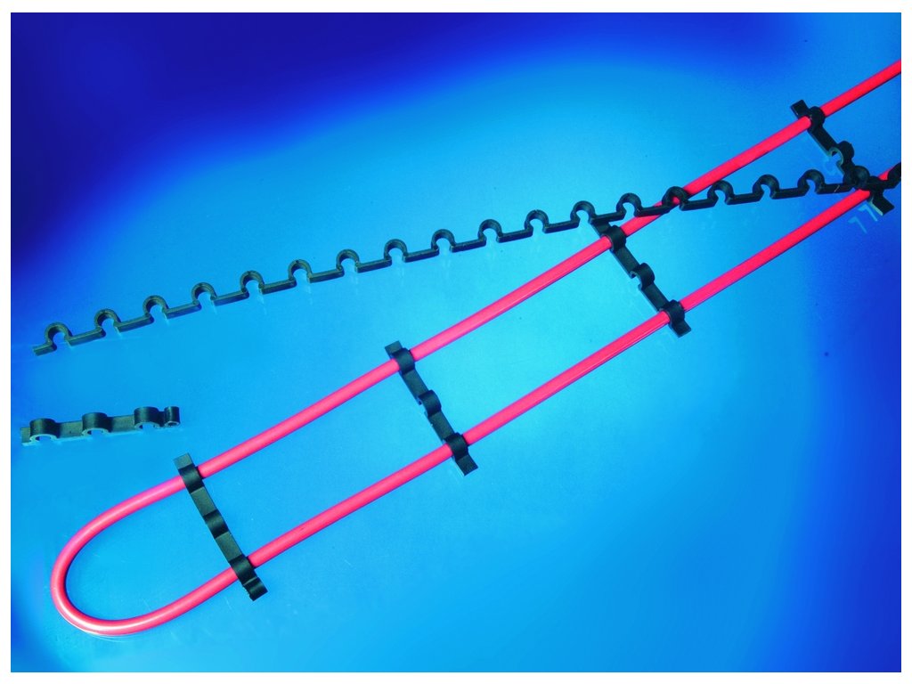 Plastový pás pro fixaci topných kabelů k podkladu.